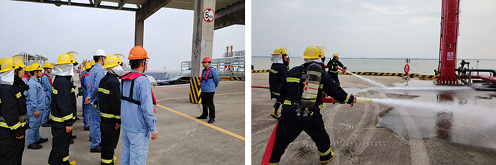 盛源石化、鴻源碼頭公司于5月2日17時30分開展管線泄漏火災(zāi)事故應(yīng)急盲演,模擬碼頭管線法蘭連接部位松動引發(fā)泄漏并起火,火勢迅速蔓延。中控室接警后,第一時間上報并調(diào)整視頻監(jiān)控,啟動應(yīng)急預(yù)案。搶險救援組、專職消防隊(duì)等迅速集結(jié),穿戴防護(hù)裝備抵達(dá)現(xiàn)場,切斷電源,啟動噴淋系統(tǒng),架設(shè)消防水槍壓制火勢。演練全程歷時20分鐘,各環(huán)節(jié)銜接緊密,未出現(xiàn)指令延誤或行動混亂,充分展現(xiàn)了企業(yè)日常嚴(yán)格訓(xùn)練的成效和救援隊(duì)伍快速響應(yīng)的能力。