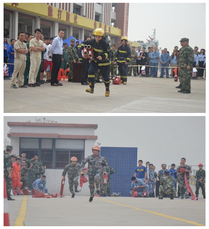 此次大比武活動共設置了著戰斗服佩戴防毒面具滅火操、5盤水帶連接操、100米綜合救助操、負重攀登6樓、著戰斗服佩戴空呼連接水槍操等五個項目,既是對體能和協同作戰能力的考驗,又是對實戰技能的考驗。競賽場上,隊員們揮汗如雨,比業務、比勇氣、比毅力,你追我趕,奮勇爭先。場外企業職工吶喊助威聲、掌聲連綿不斷,現場氛圍濃厚,氣氛熱烈。