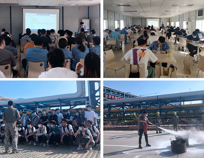 此次培訓為期兩周,課程內(nèi)容包括公司規(guī)章制度、企業(yè)文化、紀律考評、廉潔教育、聚丙烯項目介紹、各專業(yè)工藝簡介、職業(yè)衛(wèi)生、安全管理基本知識、環(huán)境保護和清潔生產(chǎn)、行為安全管理、職防與安裝設備使用、消防知識與應急處置、滅火演習等。