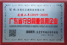 日前,廣東省市場監督管理局公布了2020年度“廣東省守合同重信用企業”公示名單,東莞巨正源科技有限公司連續二年(2019-2020年)榮獲“廣東省守合同重信用企業”榮譽稱號。